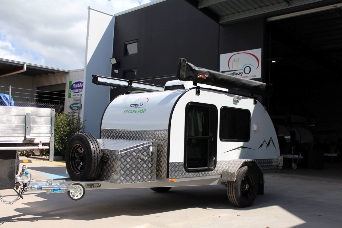 This stylish aero shaped Escape Pod is a strong light weight touring camper and is specifically designed for that ventilation and openness feeling that is a very desirable feature in a teardrop sized camper. This awesome teardrop has all of the features that adorns the Longreach camper only better.